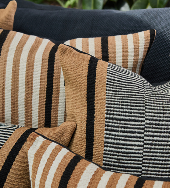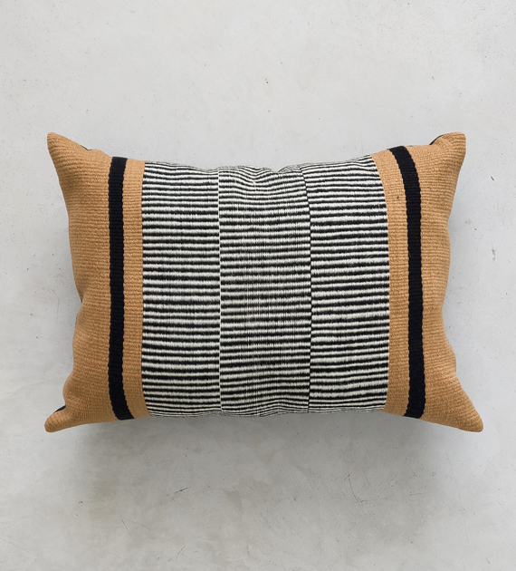 Almohadón rectangular tejido en telar criollo con lana pura de oveja hilada a mano. La colección Hornillos se caracterizan por su diseño a rayas delicadas, que aporta ritmo y sutileza visual sin sobrecargar el ambiente.