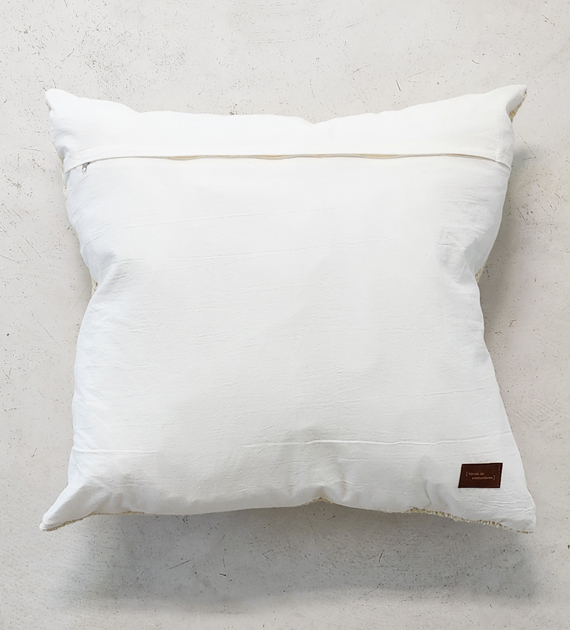 Almohadón cuadrado tejido en telar criollo con lana pura de oveja hilada a mano. La colección Hornillos se caracterizan por su diseño a rayas delicadas, que aporta ritmo y sutileza visual sin sobrecargar el ambiente.