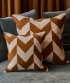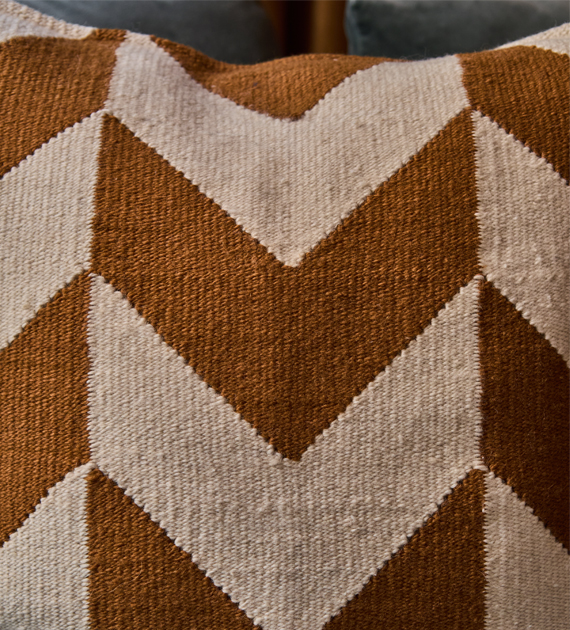 Los almohadones de la colección Valle están tejidos con lana, y se caracterizan por sus diseños de rayas, cruces y motivos geométricos, que aportan carácter y una identidad marcada al ambiente.