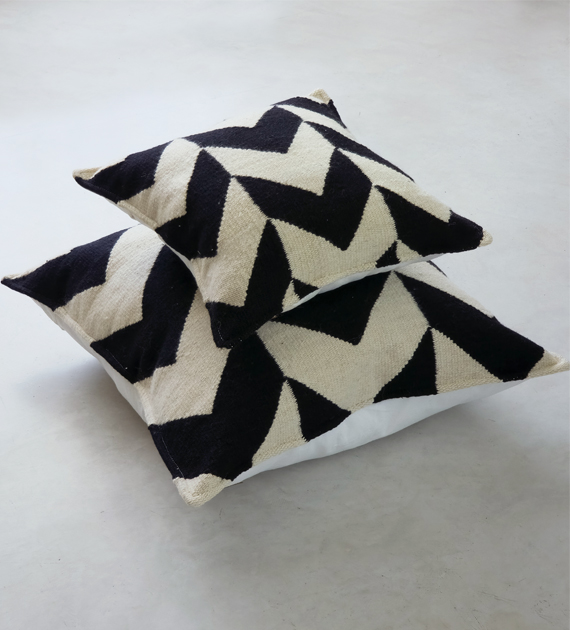 Los almohadones de la colección Valle están tejidos con lana, y se caracterizan por sus diseños de rayas, cruces y motivos geométricos, que aportan carácter y una identidad marcada al ambiente.