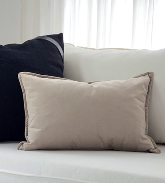 Confeccionados en pana por ambos lados, pueden usarse de cualquiera de sus caras, permitiendo rotación y mayor durabilidad. Poseen solapas y cierre oculto en la parte inferior, logrando una terminación prolija y estética sin interferir en la visual del frente.