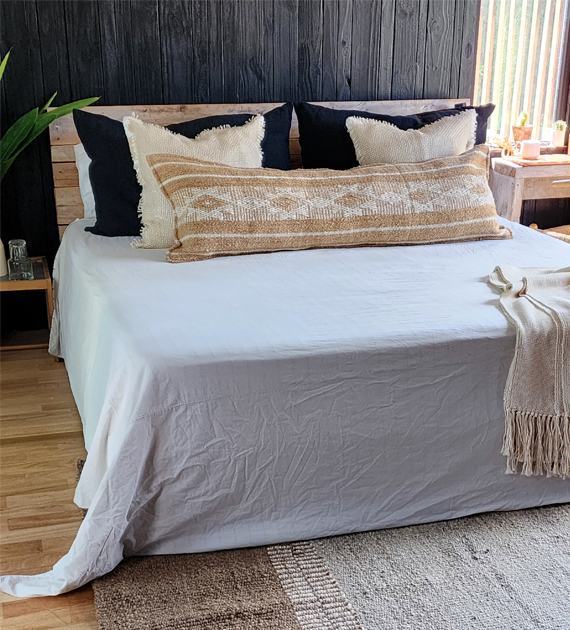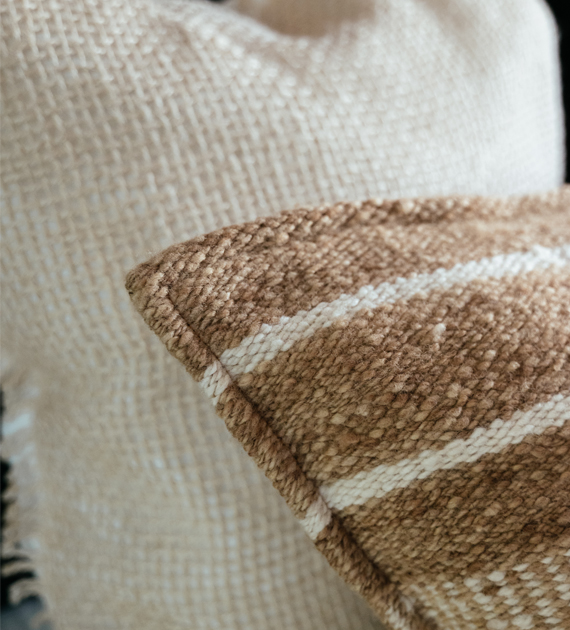 Su textura suave y estructura firme lo convierten en un almohadón funcional y resistente, ideal camas king y espacios grandes de uso cotidiano. Aporta carácter y calidez sin requerir cuidados excesivos.