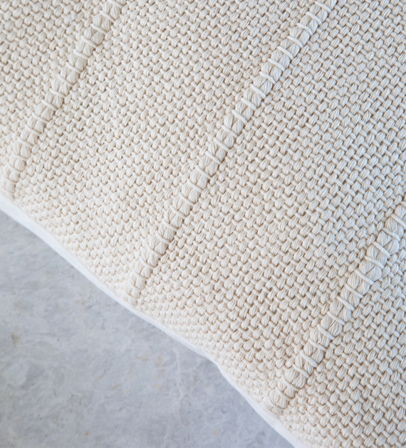 Almohadón cuadrado tejido en telar de peine con algodón puro, en tono natural. Los canelones también en tono natural aportan textura y relieve, sumando interés visual sin perder neutralidad. Una pieza equilibrada que transmite frescura y armonía, fácil de combinar en distintos ambientes.