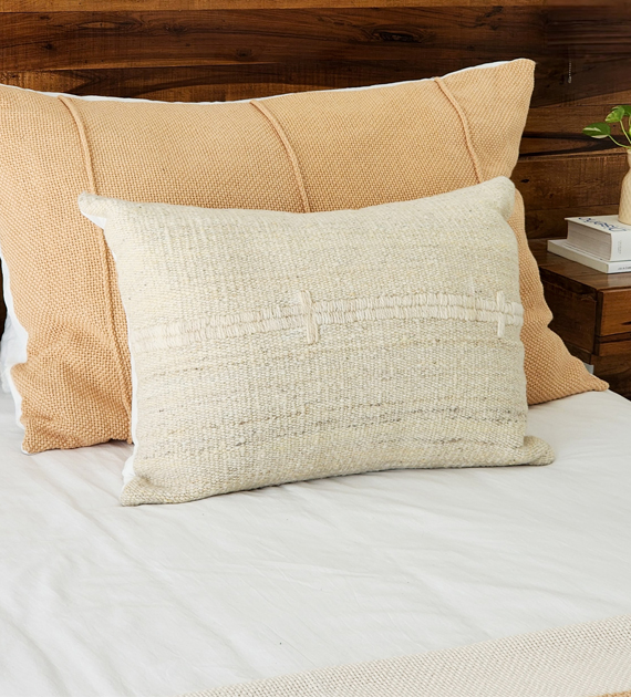 Almohadón rectangular xl tejido en telar de peine con algodón puro. Las pequeñas pestañas en el frente aportan textura y relieve, sumando interés visual sin perder neutralidad. Una pieza equilibrada que transmite frescura y armonía.