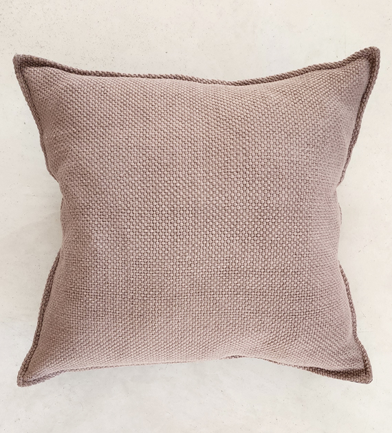 Almohadón cuadrado tejido en telar de peine con algodón puro. La colección Helena se distingue por el detalle de una pestaña perimetral, que enmarca cada almohadón y le aporta distinción y un acabado cuidado.
