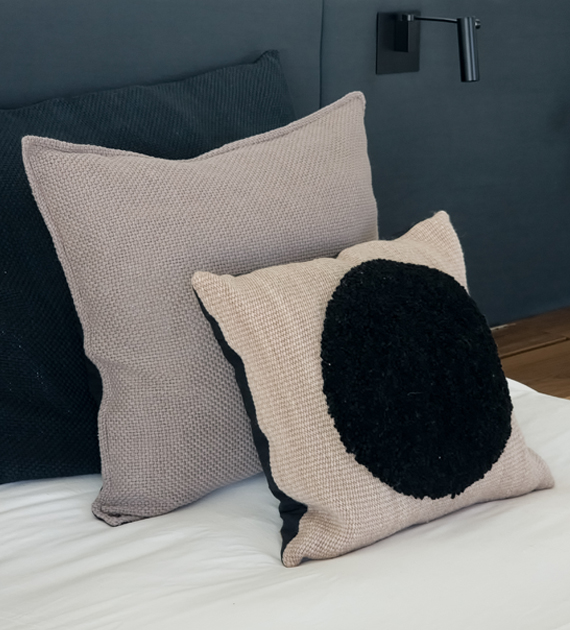 Su superficie suave y el volumen del tejido los convierten en almohadones funcionales y expresivos, ideales para sumar textura y profundidad en sillones, camas y espacios de uso cotidiano.