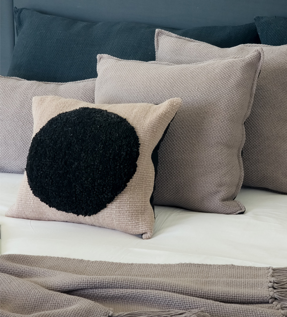Los almohadones Grama forman parte de una colección de almohadones cuadrados tejidos con la técnica de pelo cortado, un proceso que aporta relieve y una textura marcada, con un aspecto visual rico y definido.
