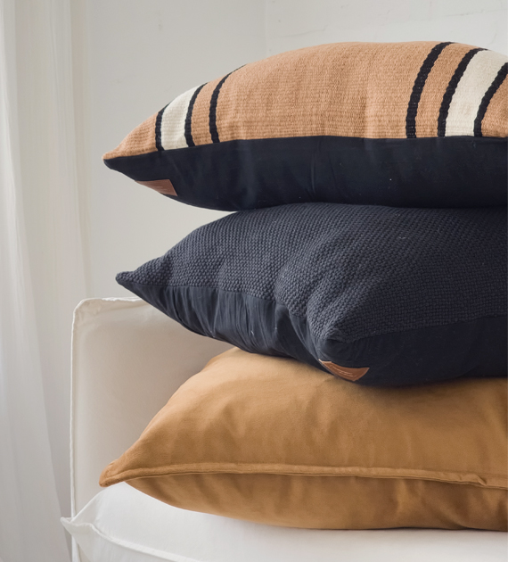 Este set reúne cinco almohadones con texturas que se complementan entre sí, logrando un conjunto armónico con presencia, calidez y diseño.