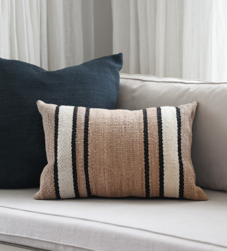 Almohadón cuadrado tejido en telar de peine con algodón puro. Contratapa en tusor 100% algodón color negro.
