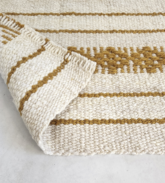 La colección de alfombras Atamisqui está tejida con lana merino, suave al tacto y de grosor medio. Esta colección reinterpreta diseños autóctonos, manteniendo su identidad, y también se ofrece en versiones lisas o a rayas, lo que permite adaptarla a diferentes estilos y ambientes.