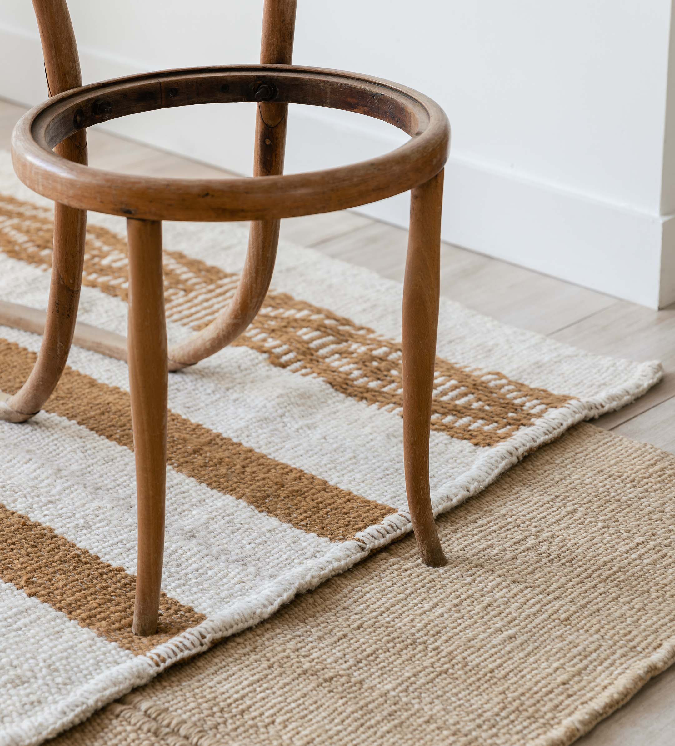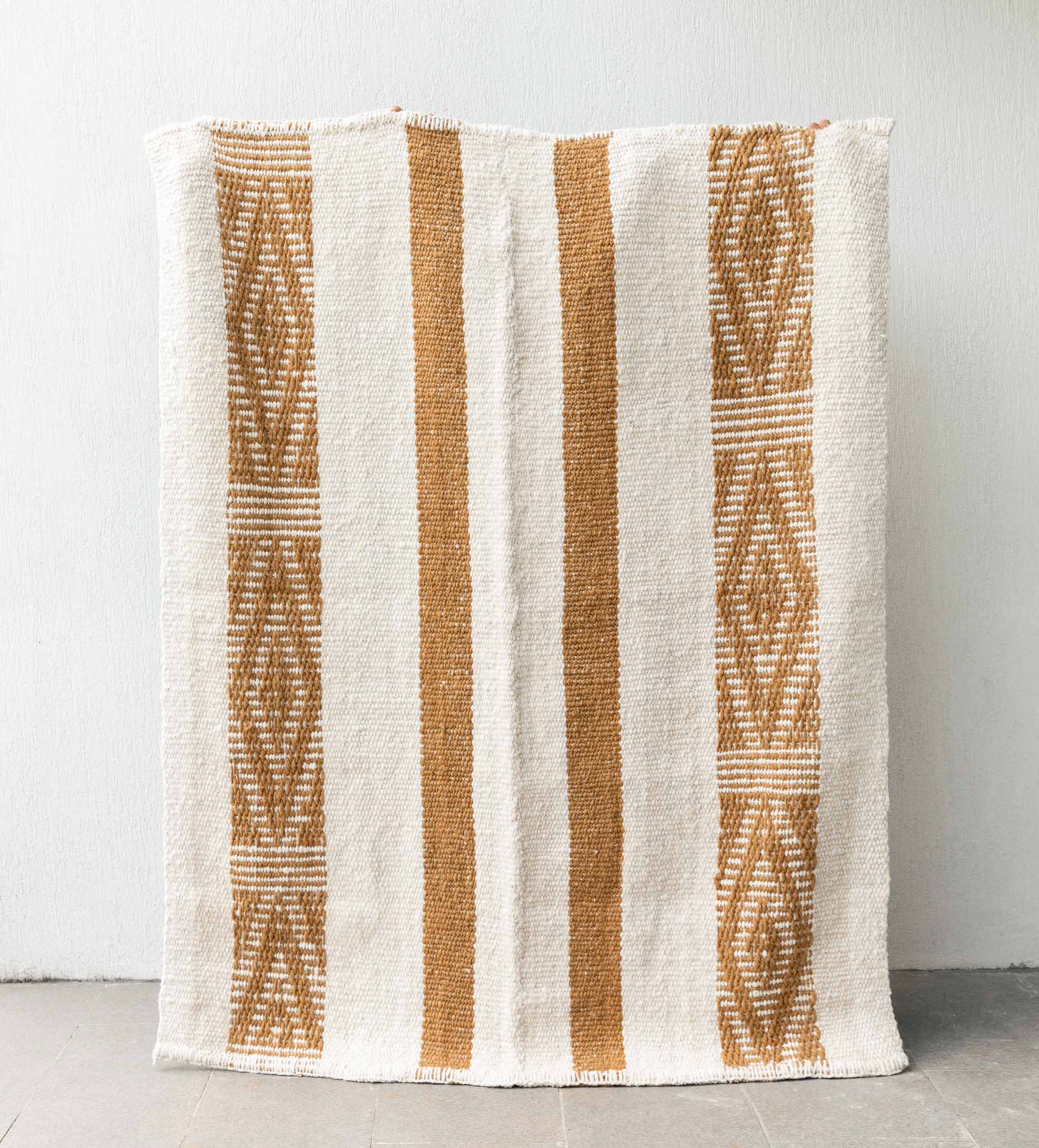 La colección de alfombras Atamisqui está tejida con lana merino, suave al tacto y de grosor medio. Esta colección reinterpreta diseños autóctonos, manteniendo su identidad, y también se ofrece en versiones lisas o a rayas, lo que permite adaptarla a diferentes estilos y ambientes.