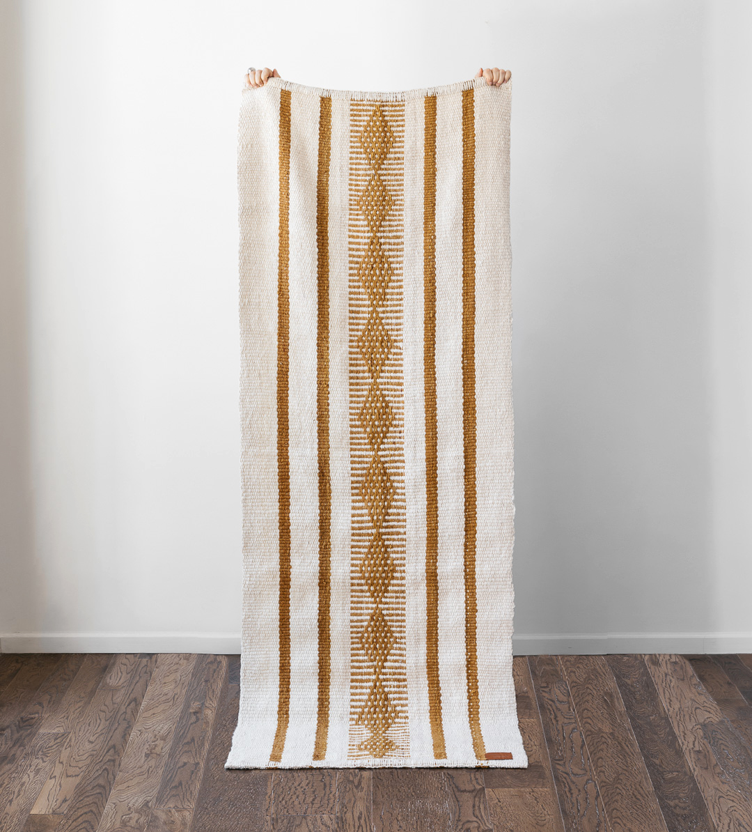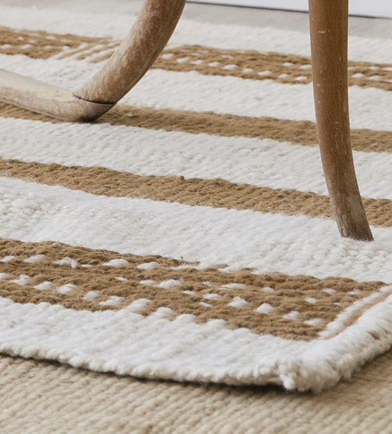 La colección de alfombras Atamisqui está tejida con lana merino, suave al tacto y de grosor medio. Esta colección reinterpreta diseños autóctonos, manteniendo su identidad, y también se ofrece en versiones lisas o a rayas, lo que permite adaptarla a diferentes estilos y ambientes.