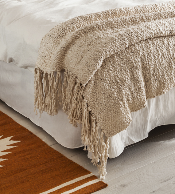 Las Mantas Tramas de Algodón están tejidas con hilo de algodón en la urdimbre y algodón flamé en la trama, una combinación que genera una textura delicada, con relieve sutil y un aspecto liviano.