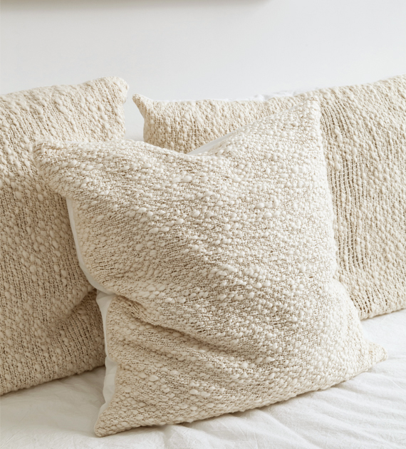 Suaves al tacto y de sensación fresca, son almohadones livianos y delicados, ideales para sillones, camas y espacios donde se prioriza el confort visual y la frescura por sobre el alto tránsito.