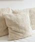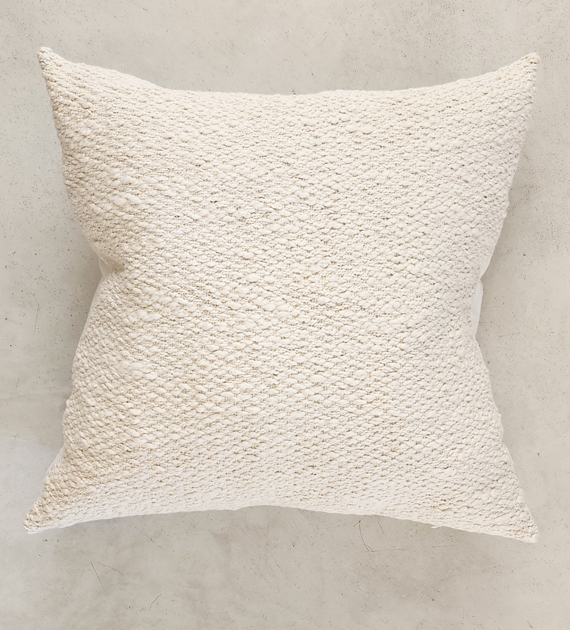 Almohadón cuadrado. Los almohadones Tramas de Algodón están tejidos con hilo de algodón en la urdimbre y algodón flamé en la trama, una combinación que aporta una textura sutil, con relieve delicado y un aspecto liviano.