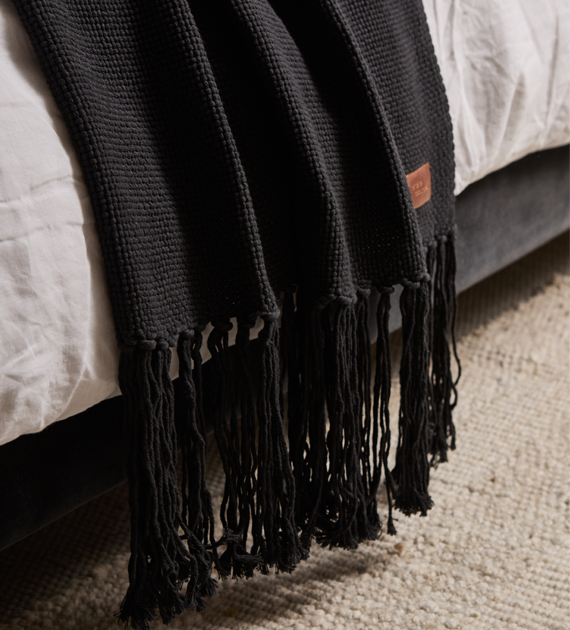 La Manta Filomena está tejida en telar de peine con algodón puro, en tonos neutros y versátiles que permiten combinarla con distintas paletas y estilos.